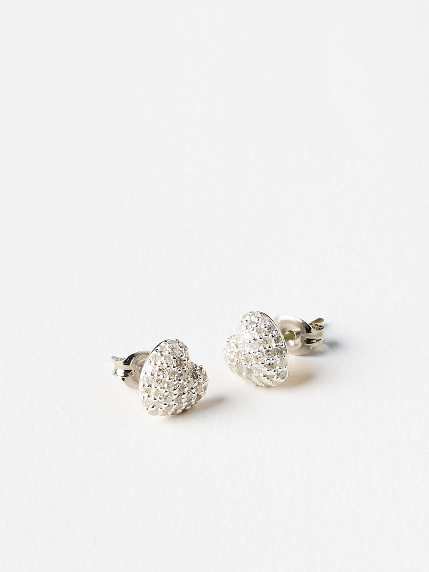 シルバー925のベースに、パヴェセッティングでダイヤモンドを贅沢に敷き詰めたハートピアス。