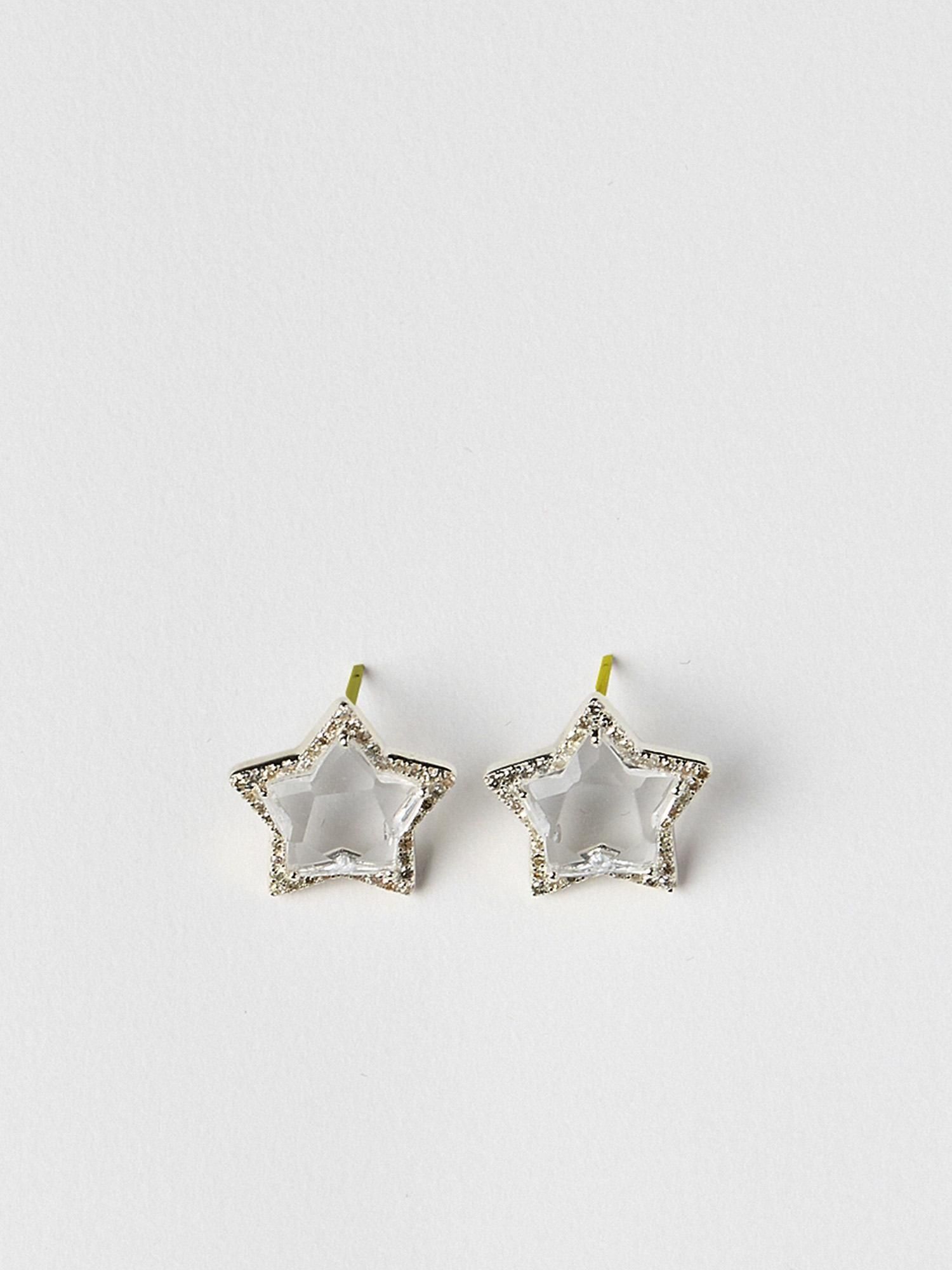 ホワイトクオーツをダイヤモンドで囲った、スターモチーフピアス。