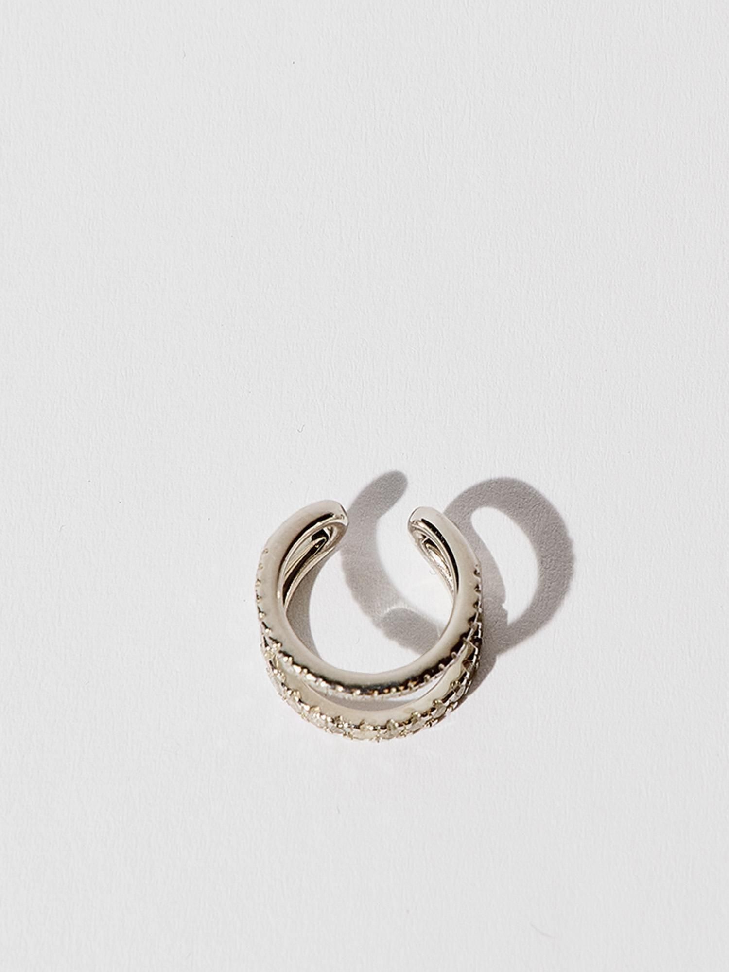 爪留めした大小2種類のダイヤモンドを贅沢に敷き詰めた、イヤカフ。